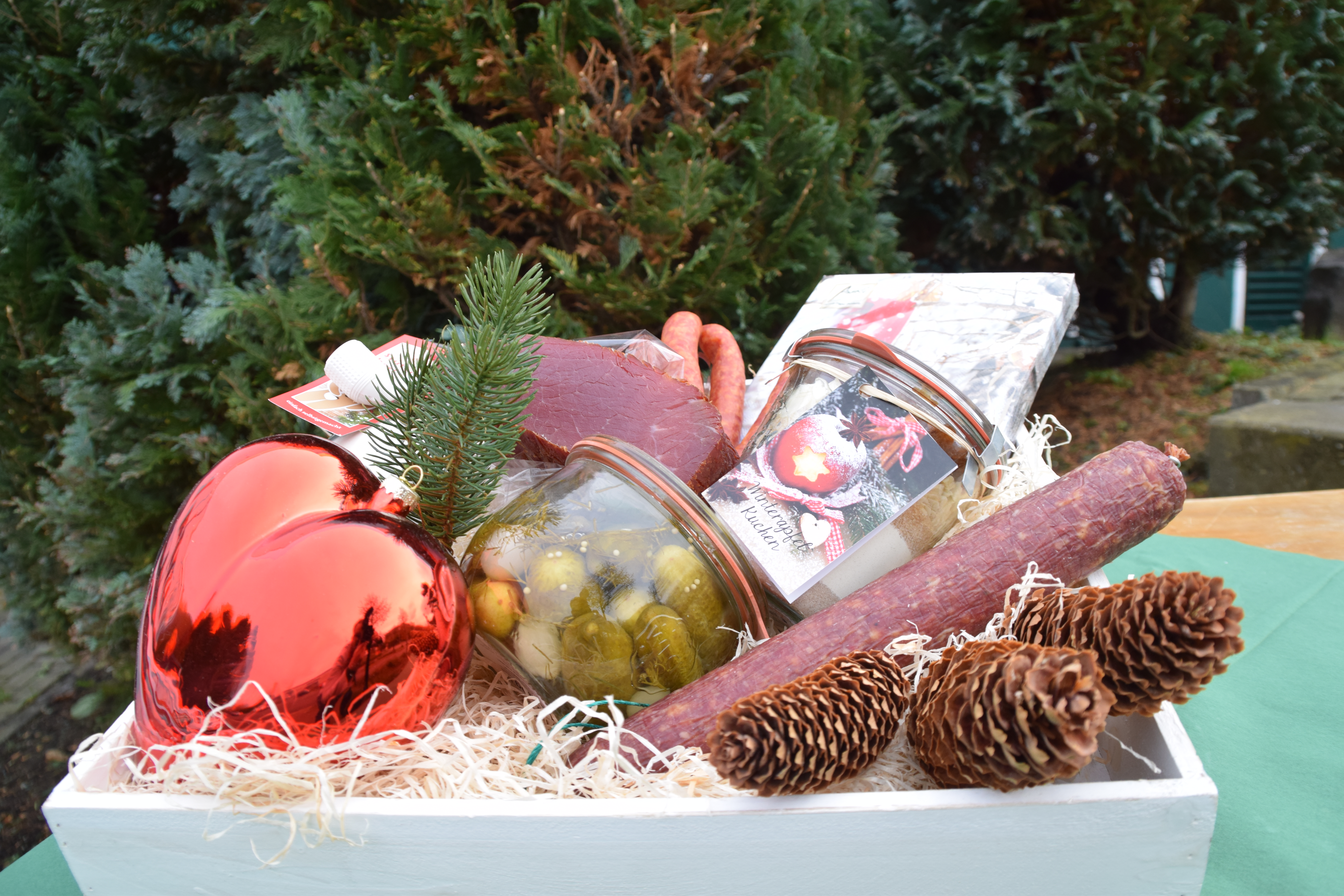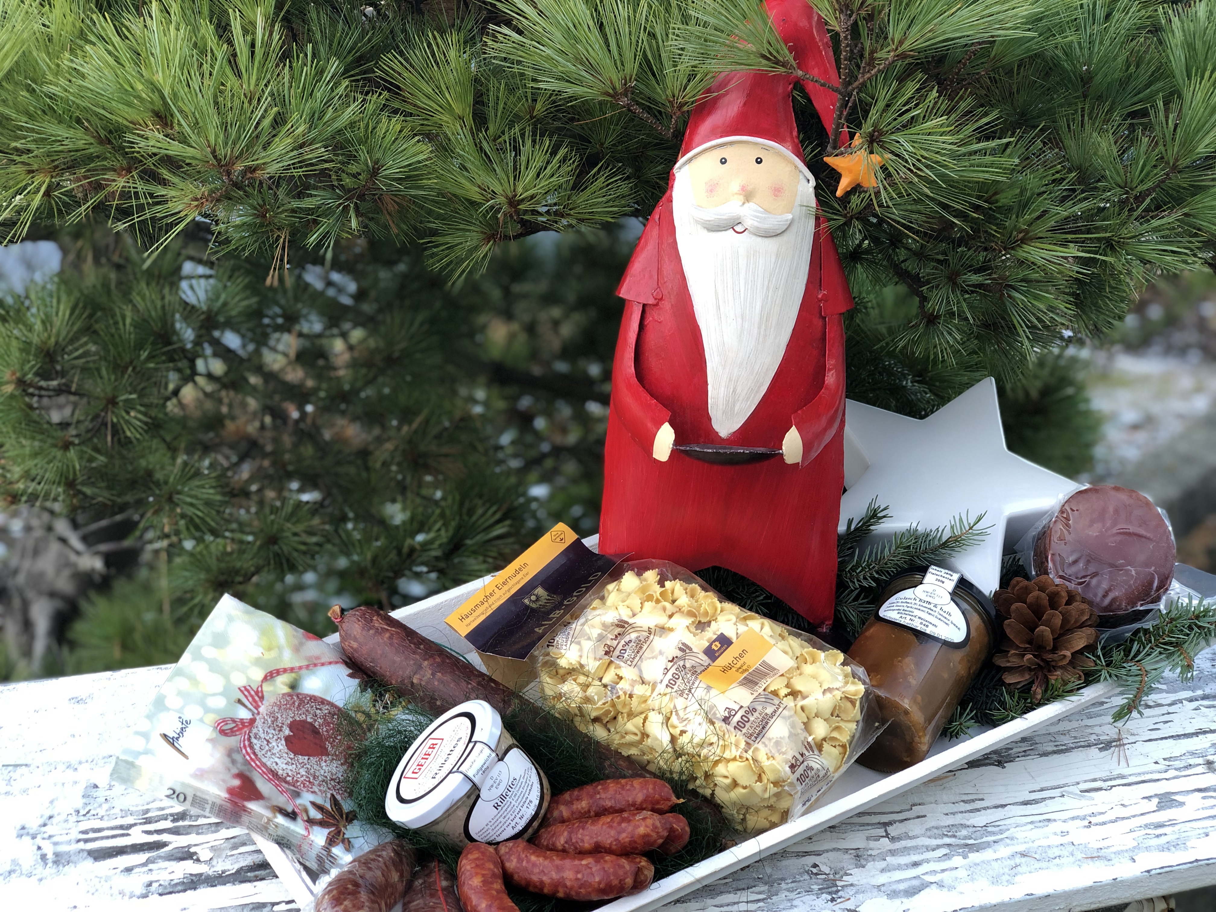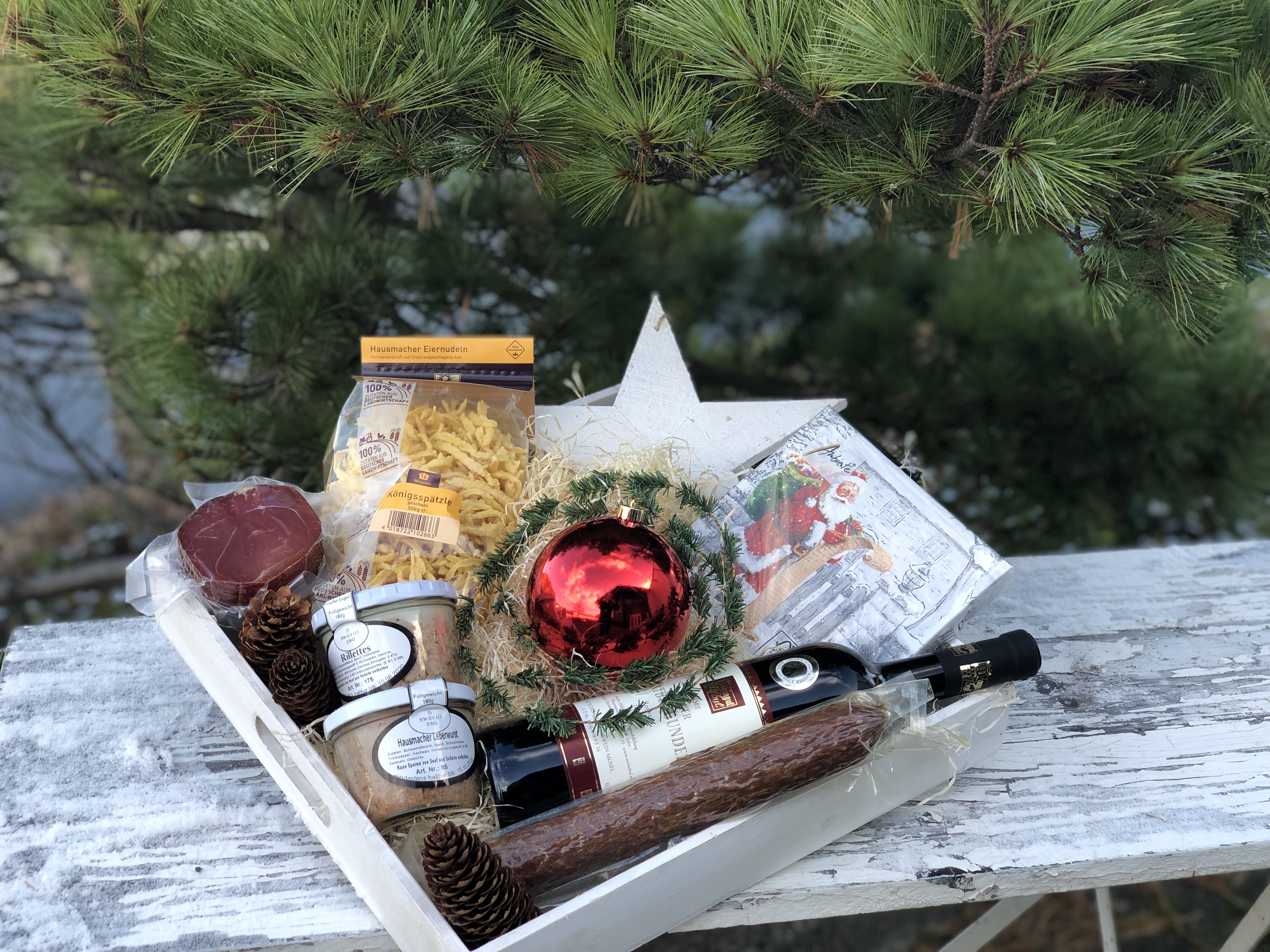 Wir gestalten Ihnen in Höhe eines Wunschwertes das passende Geschenk. Von Wurstspezialitäten über Dekoartikel bis hin zu einem edelen Tropfen.