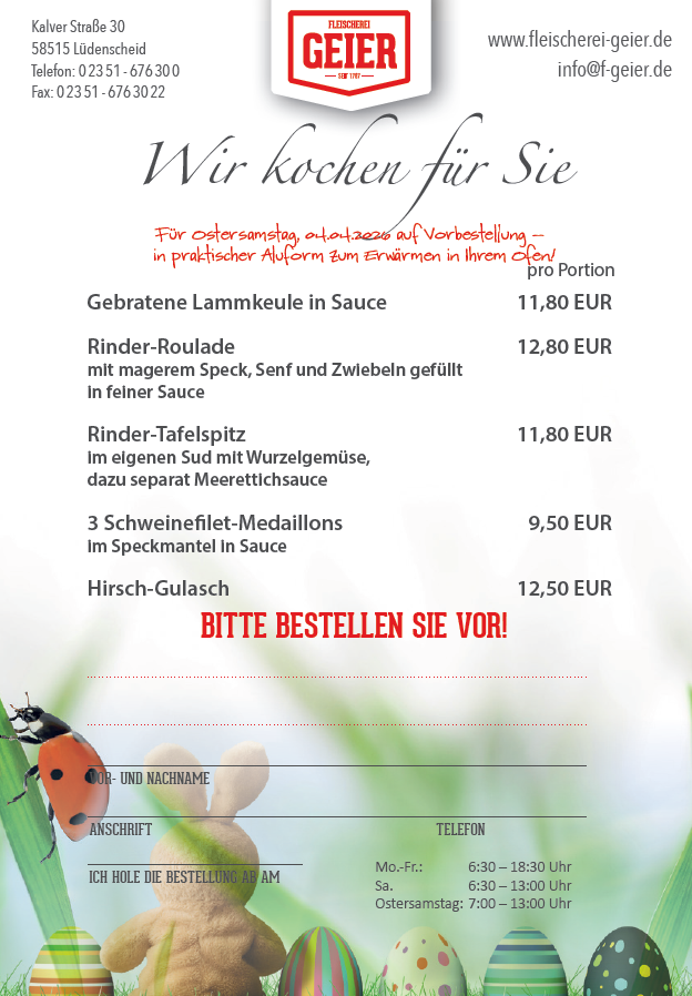 EINEN LECKEREN GENUSS FÜR IHR OSTERESSEN